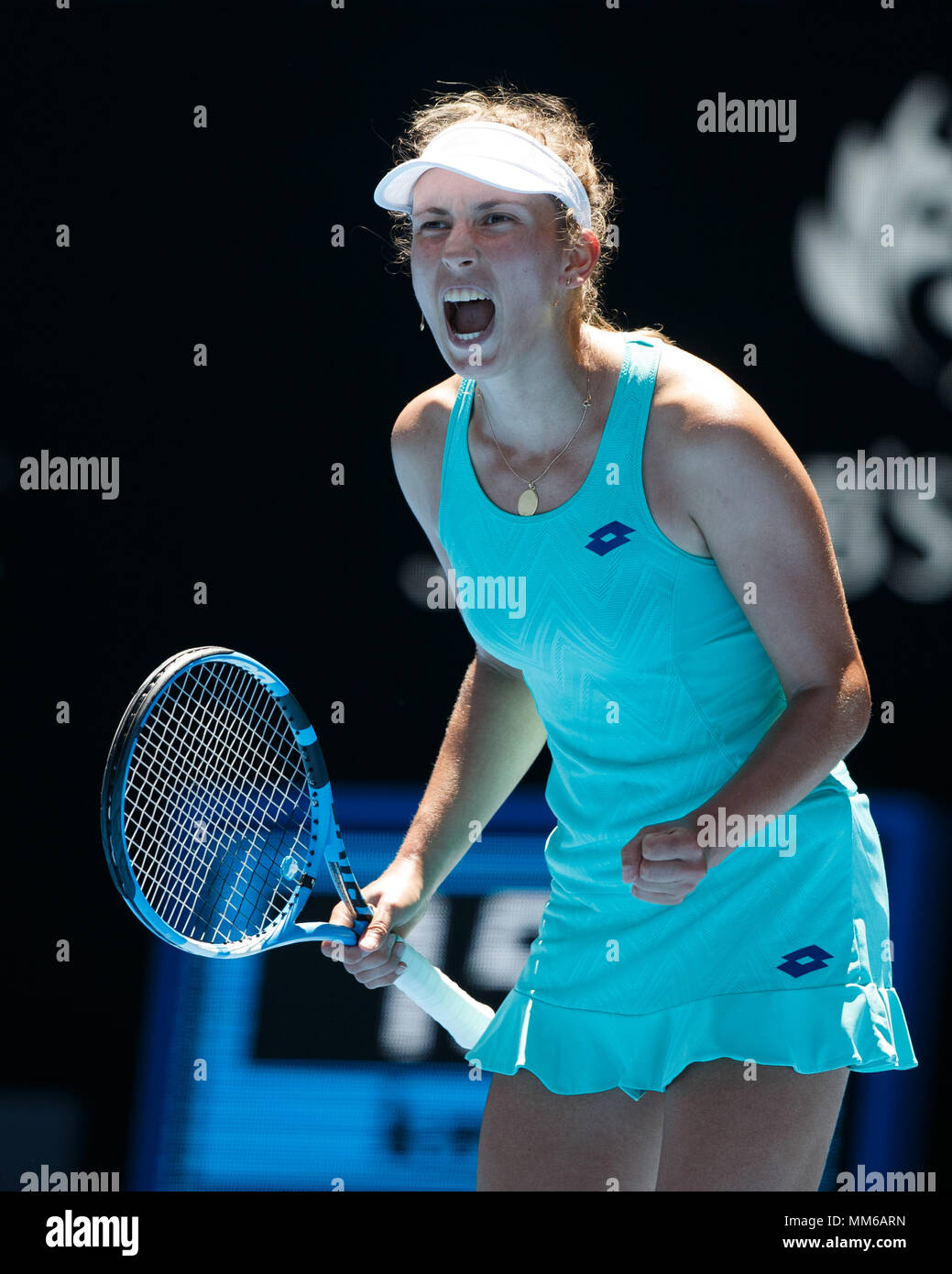 Belgische Tennisspielerin Elise Mertens Bilden Einer Faust Und Jubel Wahrend Der Frauen Singles Match In Australian Open Tennis Turnier 2018 Melbourne Park Stockfotografie Alamy